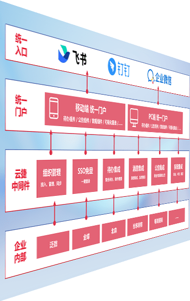 对协作平台提供支持服务,,,支持企业应用与协作平台对接,,,包含组织同步、、、消息集成、、、、待办集成等。。支持目前主流的协作平台:钉钉、、企微和飞书。。。。